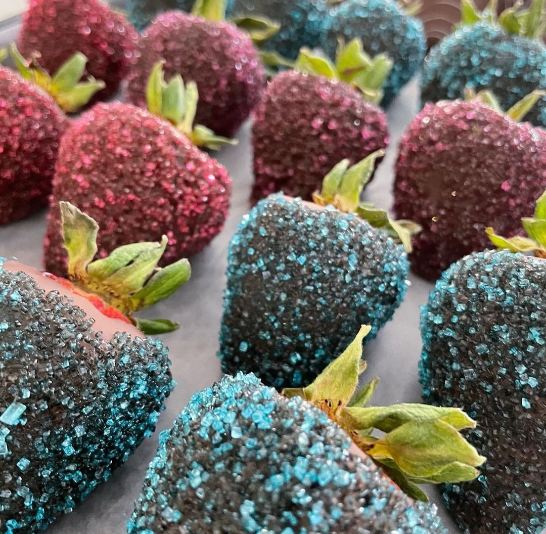 Indulge in the ultimate sweet treat with our chocolate covered berries coated in colored sugar! Each juicy berry is carefully hand-dipped in rich, creamy chocolate and then sprinkled with vibrant colored sugar crystals.